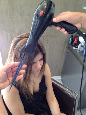 Step 2: Start with clean hair Start with clean hair by washing and drying naturally or lightly using a hair dryer. Section off the bottom half of your hair, securing the top half with a clip. For darker hair, lightly spray with water to dampen so the color adheres better.